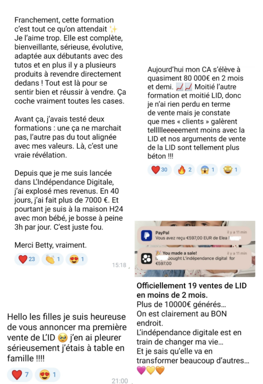 Et puis en 2025, j’ai découvert les produits digitaux avec droits de revente ! Moi qui en avait créer pour mon entreprise et qui peinait à les vendre, j’ai suivi LID et mes ventes ont fait un bond.