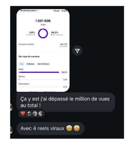 Oui, cette personne a réussi cela grâce à la méthode alors qu’elle était débutante sur Instagram !!